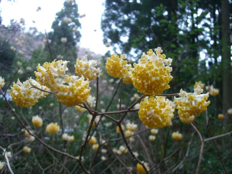 黄色い 丸い花-黄色い丸い花、 まっすぐ伸びた硬い茎の先についた黄色いボールみたいな花です。 直径2~3cm、小さな花が重なって? ひとつの花に見えます。 キク科ですって! ピンポンマムってのがあるが、チョット違うような気がする。 今咲いている黄色い花木 マンサク 他の花木に先駆けて、「まず咲く」ので「マンサク」だとか。 公園や街路では花がより派手なシナマンサクやアメリカマンサクが使われます。 ミツマタ 枝が三股になることから命名されました。 古くから庭木に使わ